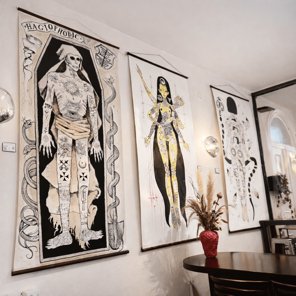 Inside 2 Phat Vegans: bright colours, posters and voodoo beads