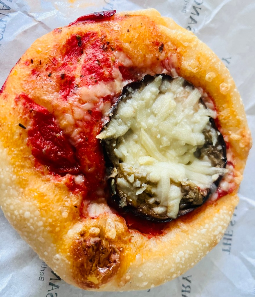 The savoury options – a cheese and ham croissant and an aubergine parmigiana pizzetta – were exceptional. The pastry was perfectly crisp, while the fillings were soft, rich and flavourful. I particularly loved the aubergine, with its deep, tomato-filled crust topped with a sprinkling of baked vegan mozzarella.