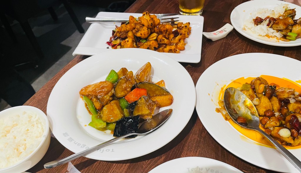 Many of the dishes are made with tofu and mushrooms, or with Asian imitation meats made from bean proteins and other meat-free ingredients. The cooks include chefs from Sichuan, the Cantonese south of China and the north-eastern Dongbei region, so the menu features a range of enticing regional flavours.