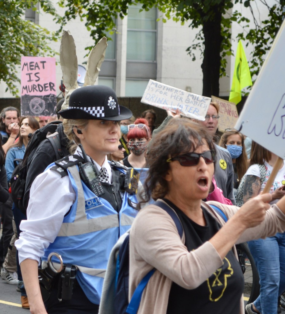 But one of the big differences between the 2021 event and the 2019 one is that this year’s was organised by the Extinction Rebellion (XR) sister group Animal Rebellion (AR) and the last one by the campaign organisation Surge. I know very little about either group, but AR definitely has a higher profile – and not necessarily in a good way, at least from a public perception point of view.